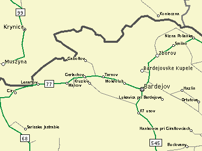 Detailed Map of Northeastern Slovakia; Around Bardejov (and the part of Poland that borders on it)