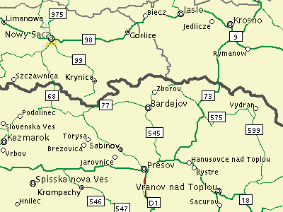 Detailed Map of Northeastern Slovakia (and the part of Poland that borders on it)